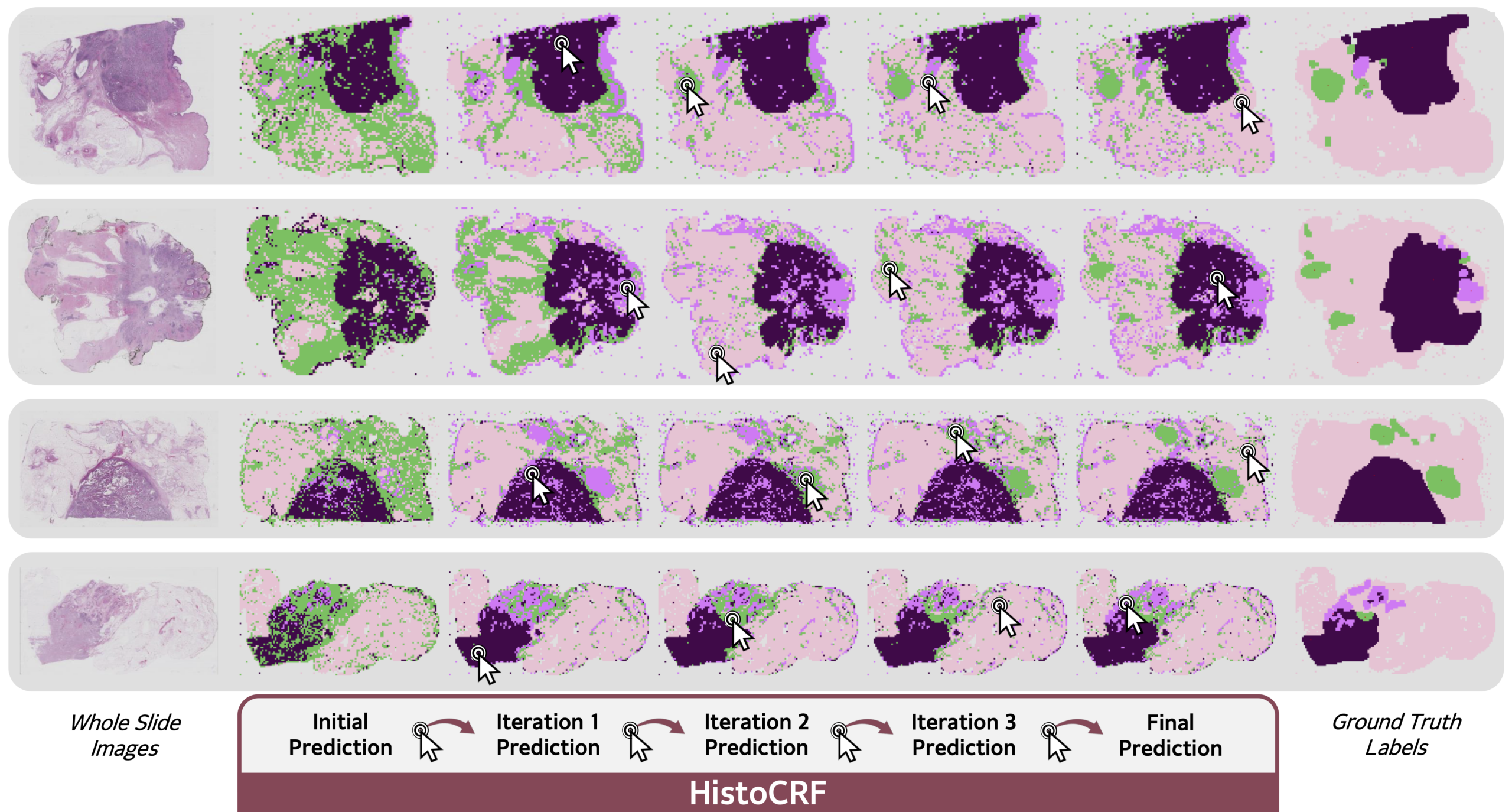 Conditional Random Fields for Interactive Refinement of Histopathological Predictions [Submitted to ICASSP 2026]